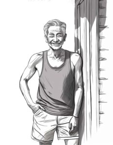 Ro and I have been together 53 years, since our 20s, so you can imagine we’re not very young. Yet last summer when our young friend Lucia – in her mid-30’s – was sitting at our table she glanced across at Ro leaning against the door frame wearing singlet and shorts. What a surprise to hear Lucia say, “He’s still hot!”