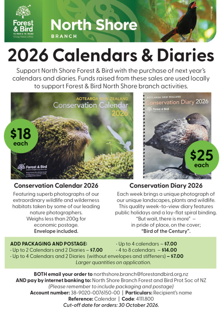 For more that 20 years Grey Power North Shore has supported Forest & Bird by promoting its annual calendar sales. Purchasing a calendar or diary from the association is a great way to assist their community projects and support the environment whilst also making Christmas and birthday gift buying easy.