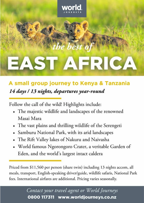 New Zealand travel company, World Journeys, specialises in African safaris and declares East Africa as one of its favourite places in the world.